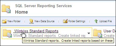 2. Click on the “Reporting” tab, then on the “Report Manager” sub-tab to go the Report Manager Home page. You must first select the source for the linked report. The source (templates) are in the Wintriss Standard Reports directory.
