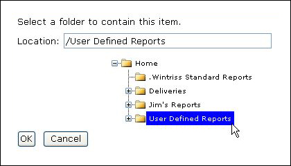 8. Click on the folder where you’d like to store the new report - typically this is the included "User Defined Reports" folder. If you’d like to create a new directory for the report, see “Creating a New Report Directory”.